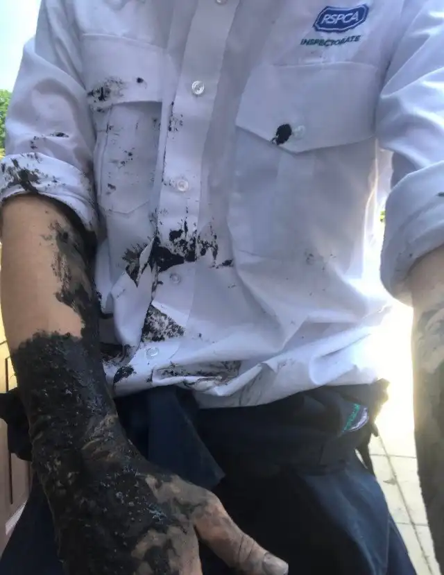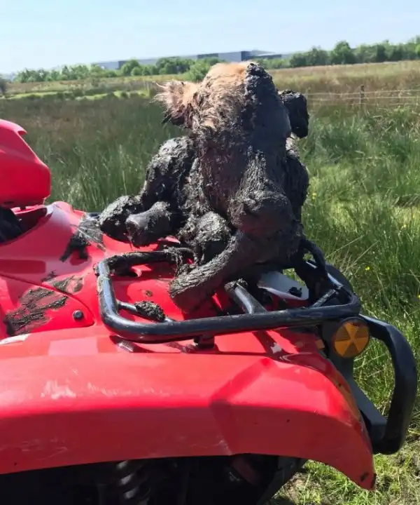Водитель трамвая спас теленка, застрявшего по шею в болотистом пруду, который в жаркую погоду превратился в грязную лужу. Райан Кинг заметил, как теленок барахтается в густой липкой грязи в пруду в Рочдейле и понял, что он может утонуть. Мужчина подложил ему под нос полотенце, чтобы он оставалось над поверхностью воды, а сам подсунул под него другое полотенце и использовал его как перевязь, чтобы вытащить теленка. Он был жив и здоров, только испачкан грязью. Спасенного теленка забрал фермер на квадроцикле и отвез домой, где помыл и почистил.