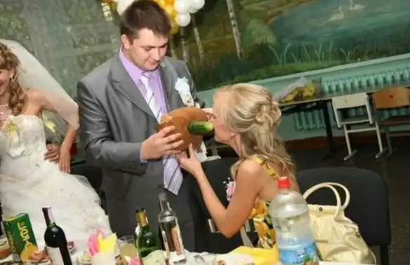 Это всё народная свадебная культура, но лично я очень рада, что таких свадеб становится всё меньше, мы уходим от пошлостей и свадьбы становятся более красивыми и утончёнными. Вместо тамады появились свадебные ведущие, которые на вашей свадьбе треш точно не устроят.