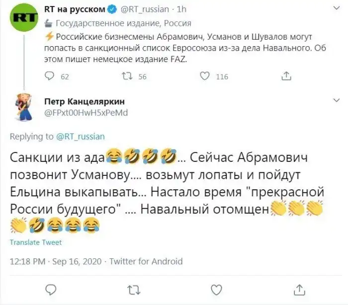 В СМИ появилась информация, что российские олигархи могут попасть под санкции. Эту новость уже тоже обсудили в Твиттере