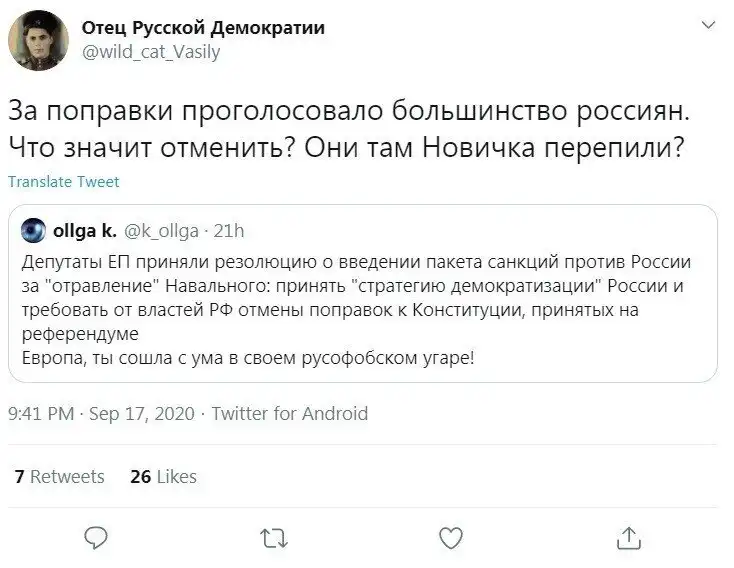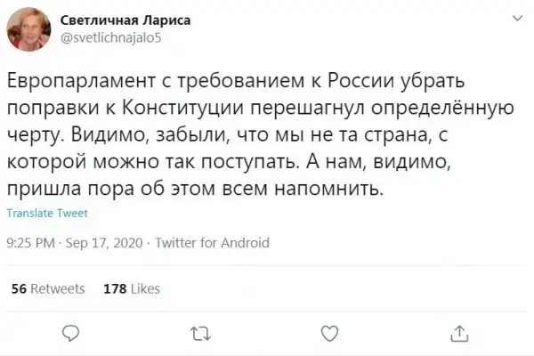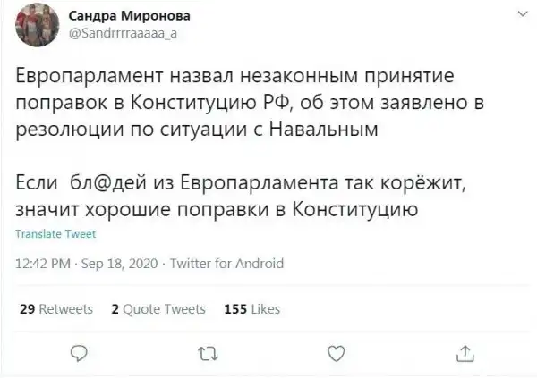 Задело данное заявление Европарламента даже тех, кто голосовал против поправок