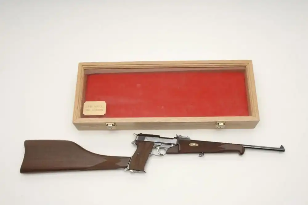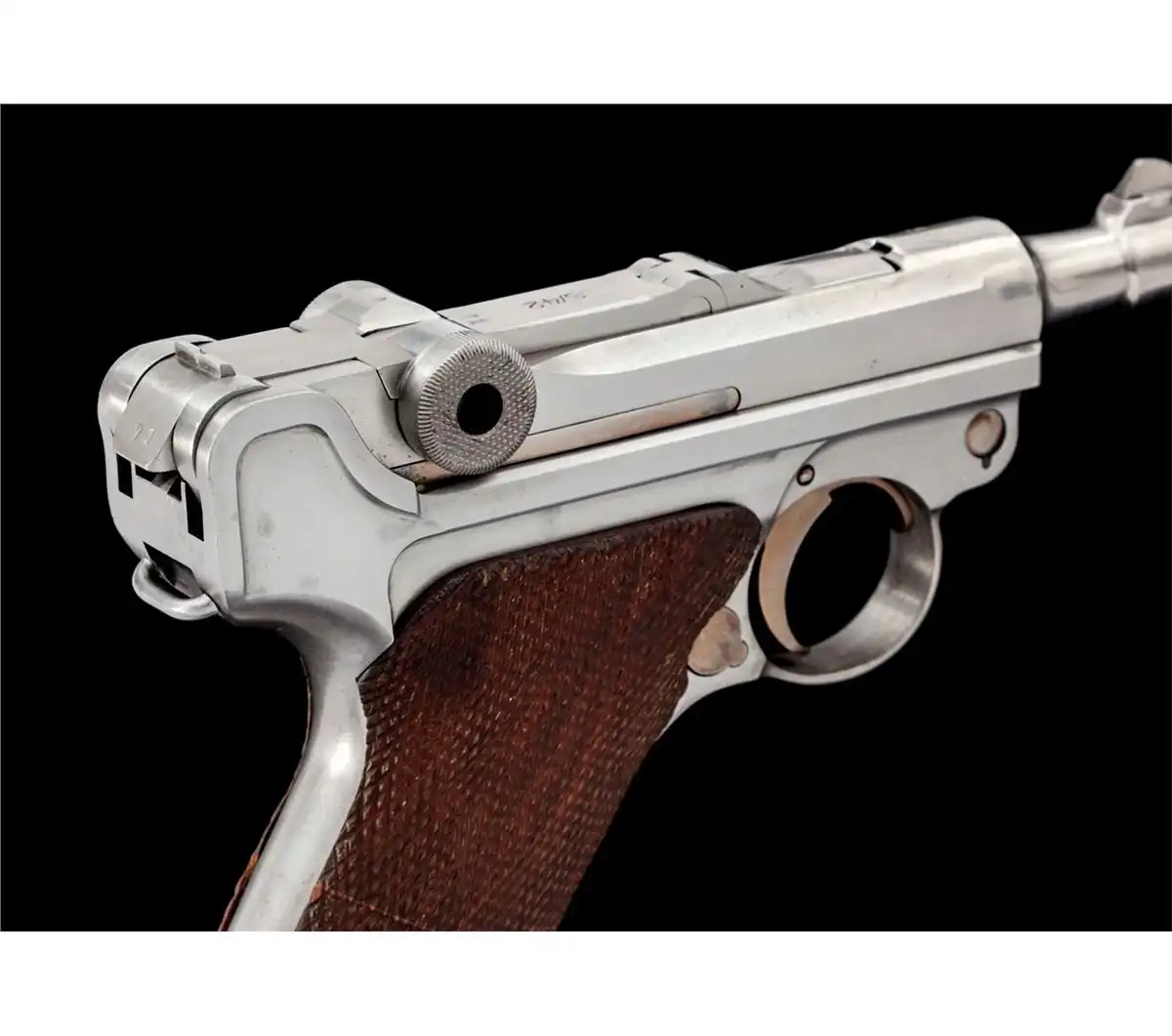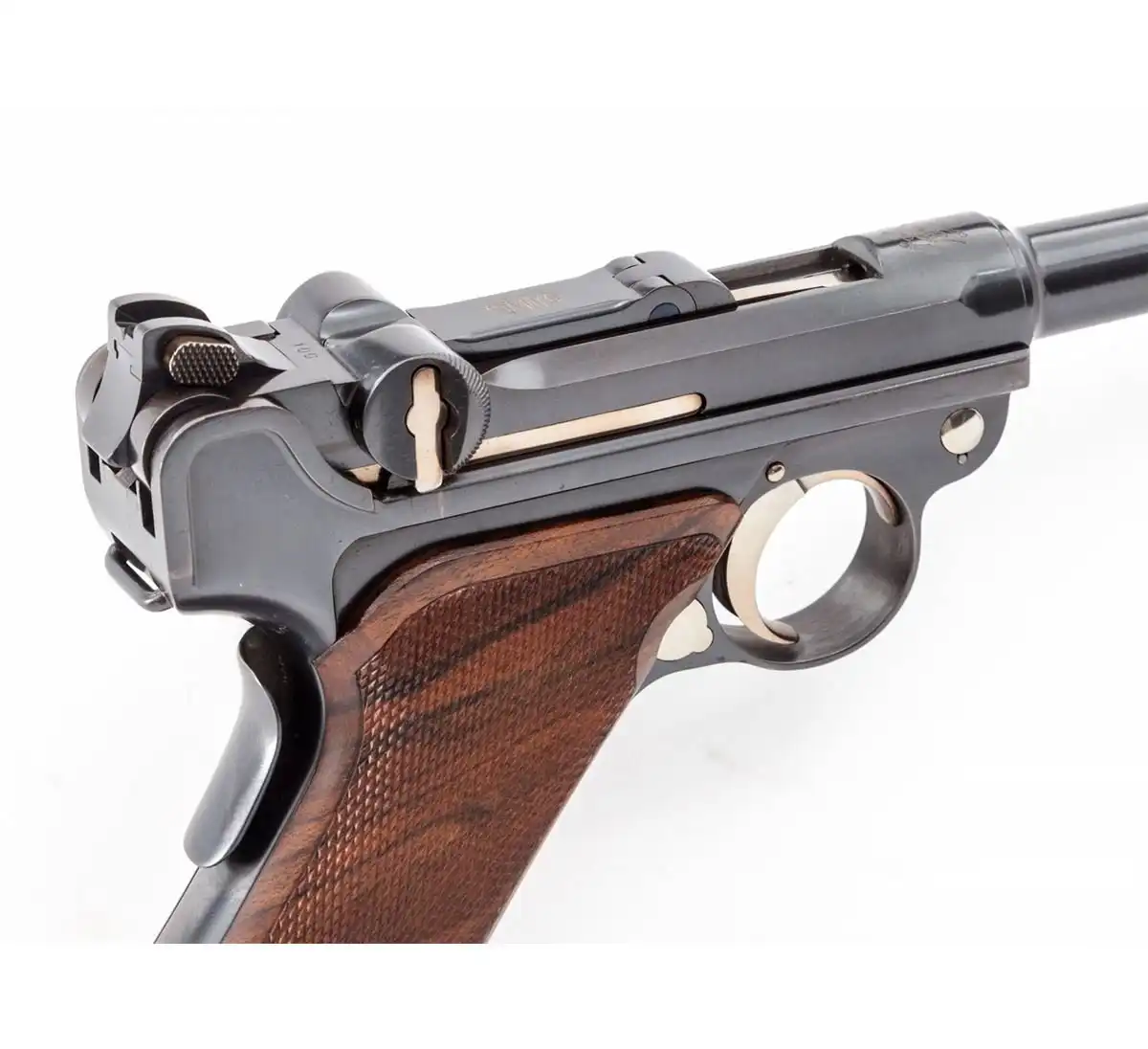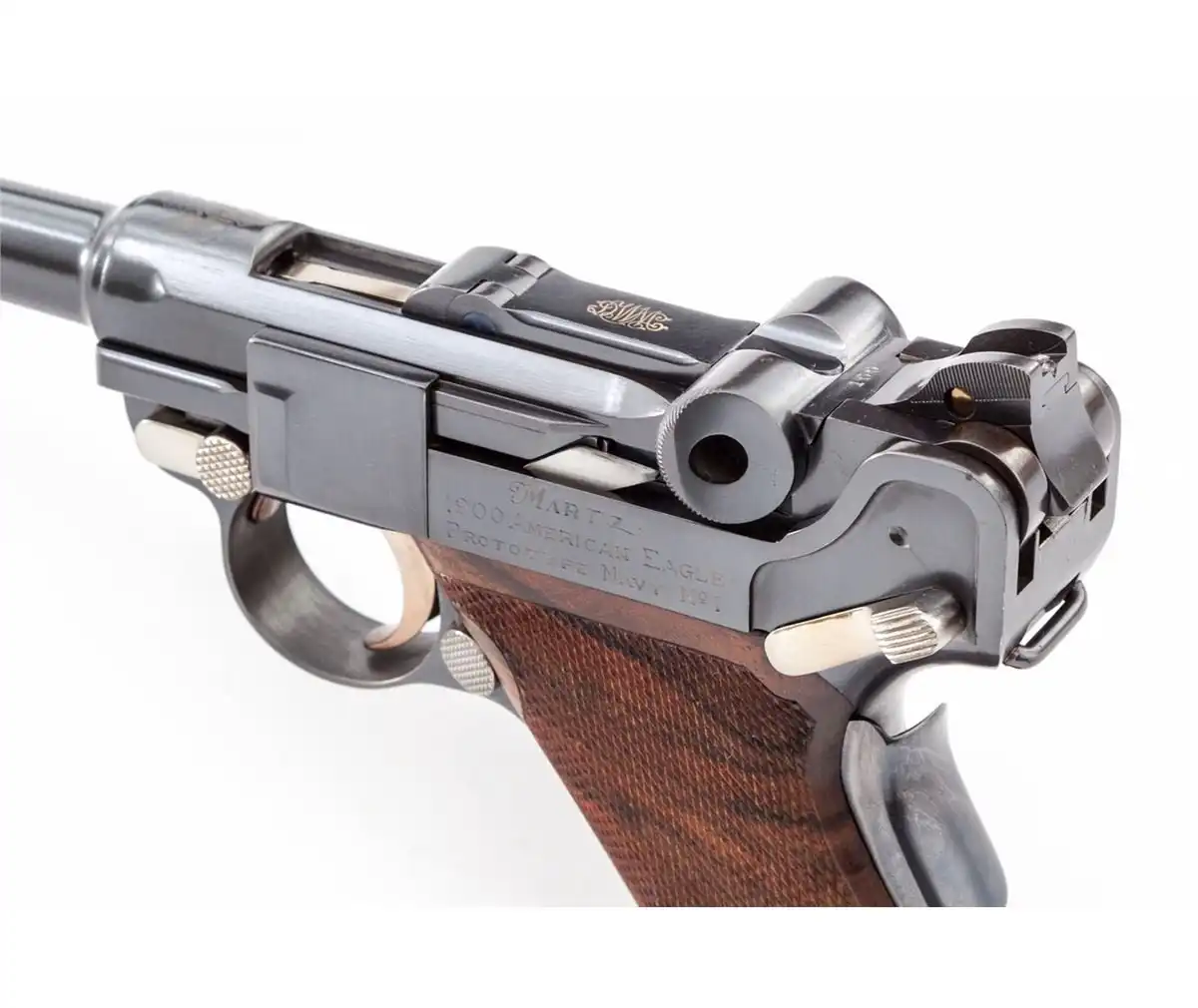 Копия прототипа 1900 года для экспорта в США, так называемый 'American Eagle' с шестидюймовым стволом, но при этом калибра 9мм вместо "родных" 7.65., серийный номер 1.