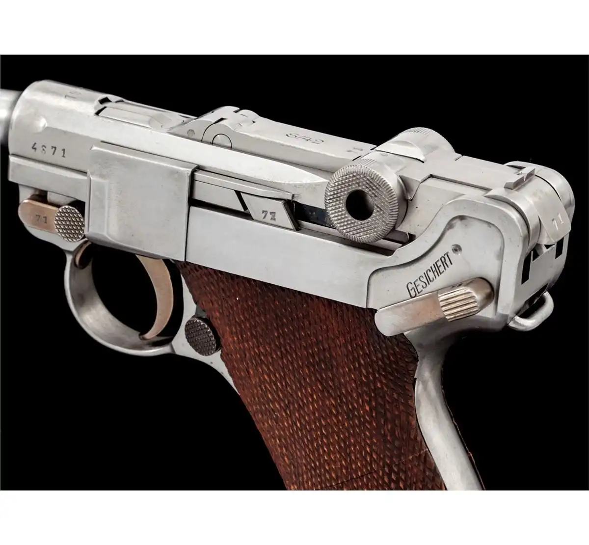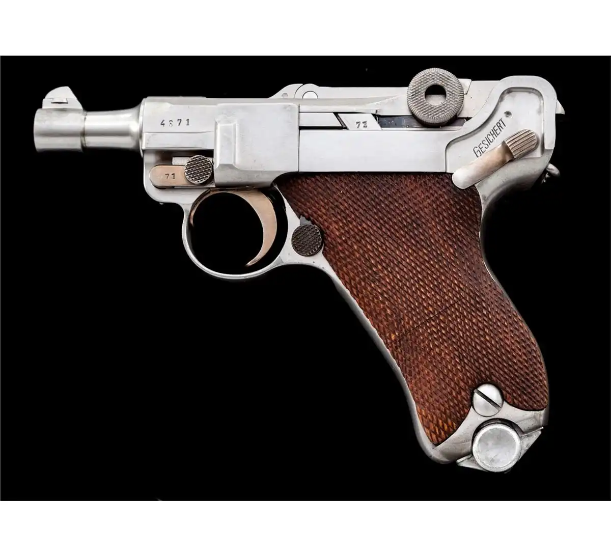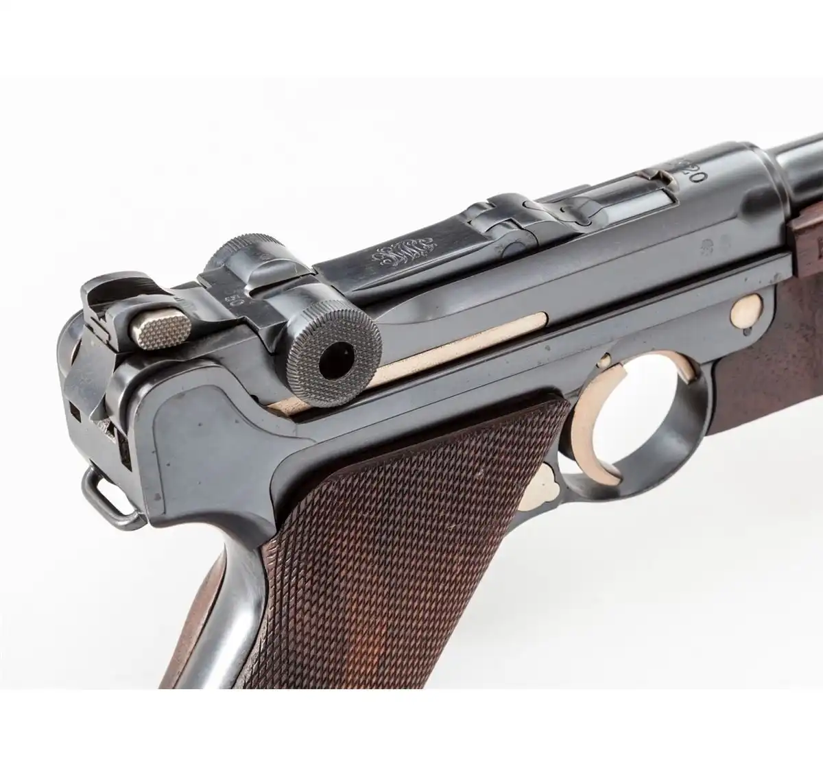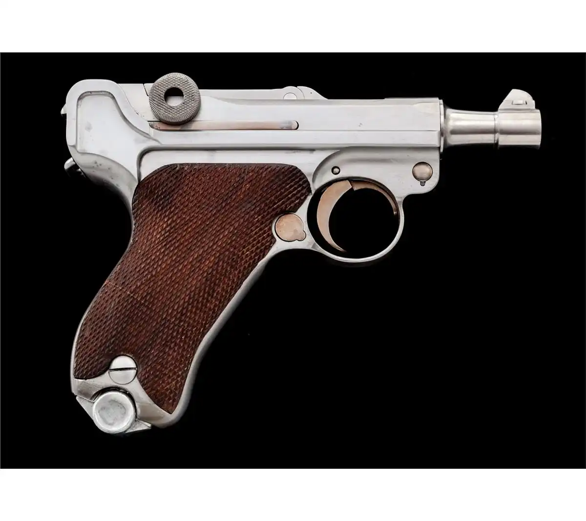 Копия прототипа 1900 года для экспорта в США, так называемый 'American Eagle' с шестидюймовым стволом, но при этом калибра 9мм вместо "родных" 7.65., серийный номер 1.