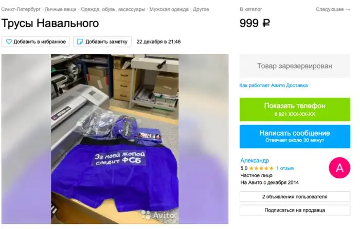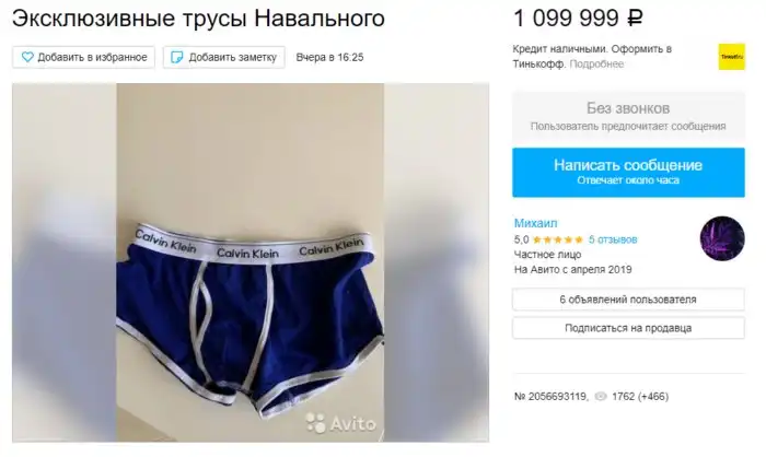 Первыми золотую жилу нащупали питерцы: Санкт-Петербургский Авито запестрил объявлениями о продаже тех самых трусов блогера