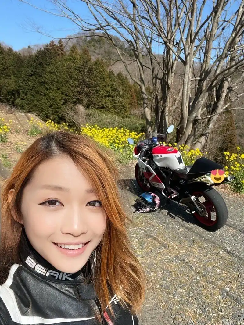 Поклонники обожают японку за то, что она отлично разбирается в технике, в том числе и своём красно-белом байке Yamaha.