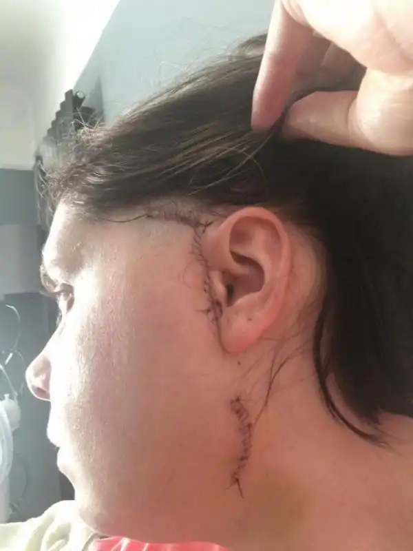 У Холли случился перелом сустава челюсти. Эта, казалось бы, несерьезная травма превратила ее жизнь в ад. Ей пришлось сделать 5 операций, вставить 12 винтов и в итоге вставить пластиковый диск вместо поврежденного сустава.