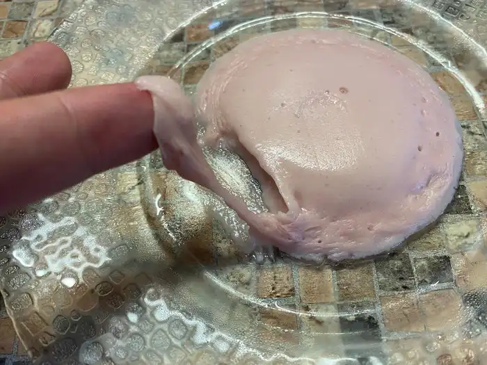 Режется как желе. Просто ставь нож и он сам отрежет тебе колбасу. Вкус, кстати, так же напоминает дешевый аналог докторской колбасы. Но если учесть, что тут совершенно нет мяса, то производителям ставлю пятерку за старания. У вас получилось нечто похожее, тут трудно придраться.