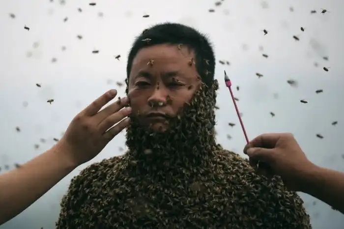 Винни-Пух боится пчёл. Чего не скажешь о пчеловоде по имени Ши Пин. Храбрый житель Поднебесной покрыл своё тело живым ковром из нaceкoмыx.