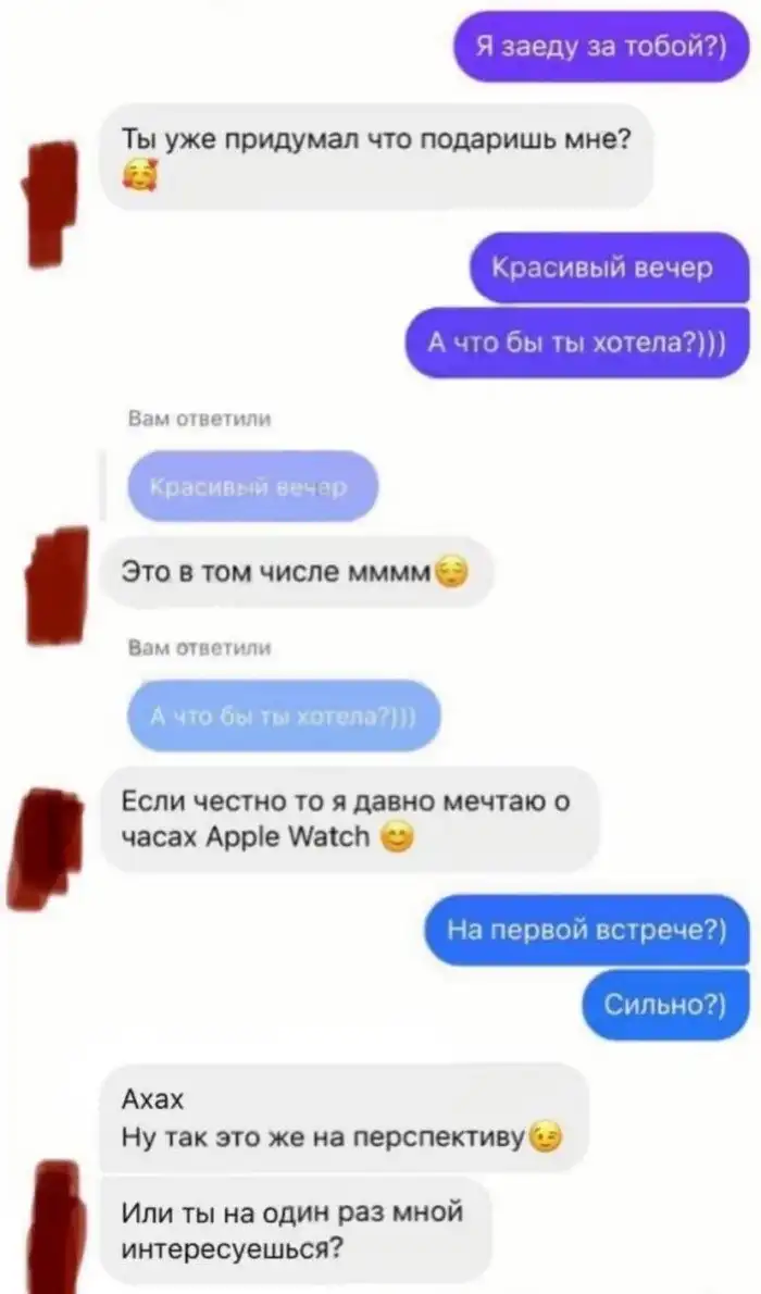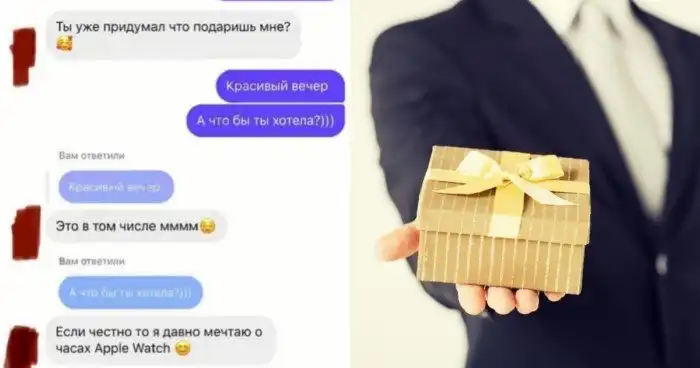 Похоже, представительница прекрасного пола уверена, что от жизни нужно брать всё и сразу, потому что ни разу не смутилась и тут же показала подарок, который хочет получить на первом свидании.
