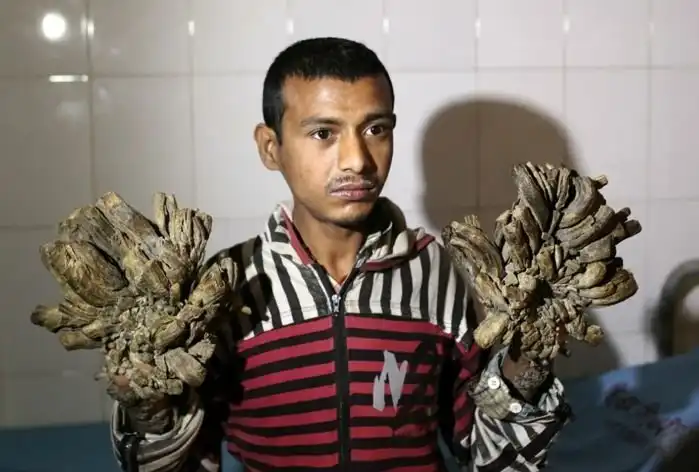 Деде Косвара – так звали индонезийца, ставшего известным во всём мире. Наросты покрыли всё тела, оставив лишь редкие просветы. Удивительно то, что новообразования распространялись с умопомрачительной скоростью. Примерно каждый год их становилось больше на 5 сантиметров.