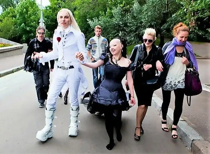 Свадебные фотографии Саши и Иры Толстовых обсуждают в интернете и по сей день, не смотря на то, что с того момента прошло уже целых 13 лет.Всё дело в том, что свадьбу влюблённые сыграли в необычных образах. Невеста была одета в чёрное платье, вопреки всём традициям и легендам. А ее причёска повергла всех в шок. Она сбрила пол головы и выбрала для себя чёрные длинные дреды.. Жених же был одет чуть попроще, но его внешний вид так же не оставил людей равнодушными. На голове Александра красовались белые дреды, а на ногах - кроссовки на высокой платформе.
