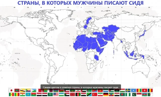 Таким образом, примерная карта стран, в которых мужчины писают сидя, выглядит так: