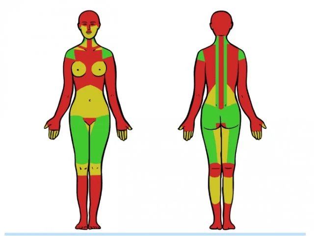 Также важно понимать, что кусание — процесс исключительно добровольный, насилию здесь не место. Кусать незнакомок не рекомендуется, а близких женщин следует обстоятельно готовить к этому делу, заранее предупредив. Как минимум, можно нанести пробный легкий укус в одну из нижеобозначенных зеленым или желтым цветом областей, чтобы заявить о намерениях.