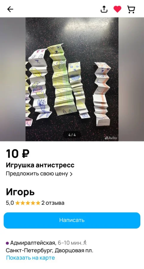 Отец пятилетней девочки выложил на продажу игрушки, созданные его дочерью. Маленькая предпринимательница очень радуется количеству "сердечек", которые появляются, когда люди добавляют объявление в избранное. Поэтому мужчина не просит покупать вещицы, а лишь "поставить сердечко" для его любимой дочки.