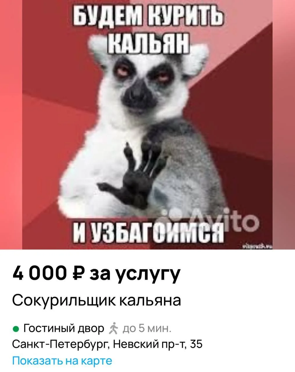Мамкин бизнесмен с Авито предлагает услугу сокурильщика кальяна