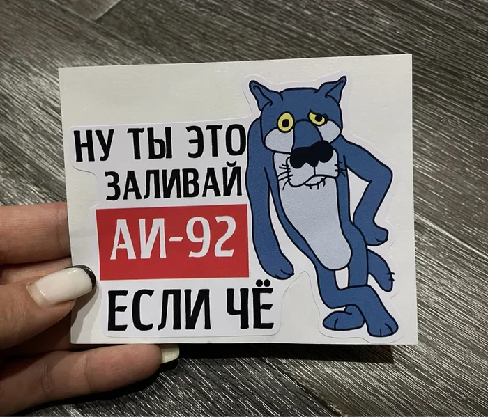 Наклейка 'если чё' про 92 бензин. Ссылка на неё. Также есть про 95 и 98 бензин