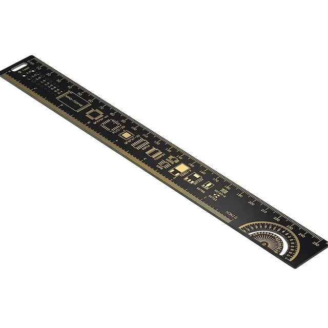 Линейка радиолюбителя PCB Ruler v2-6 - незаменимый помощник инженера, разрабатывающего радиолюбительские платы и схемы. Позволяет определять размеры SMD элементов, посадочных площадок микросхем, производить замеры толщины проводников, а также диаметра жил по размеру AWG, имеет шкалу для измерений, а также множество полезных инструментов (калибровочные отверстия, наборы отрезков проводников и футпринтов для быстрого определения размерности, «шпаргалки», нанесенные шелкографией). Стоит такая линейка 85 рублей. Ссылка на неё.