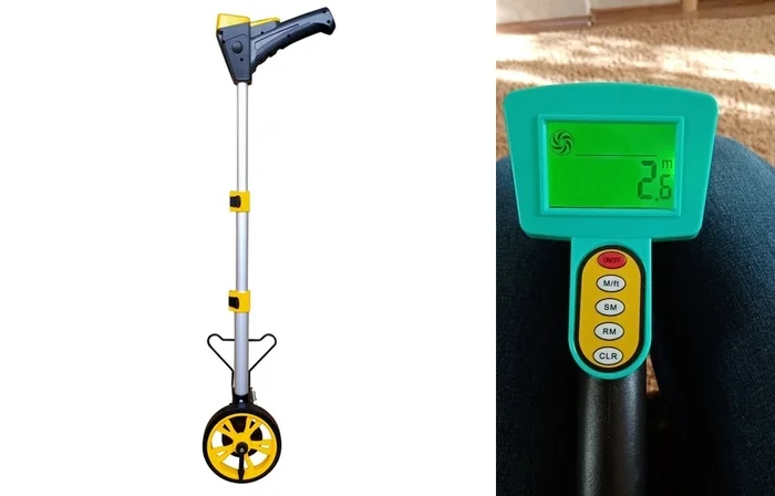 Телескопическая рулетка-колесо с счётчиком на 99 999 метров. Стоит такое 2600 руб . Ссылка на электронную рулетку