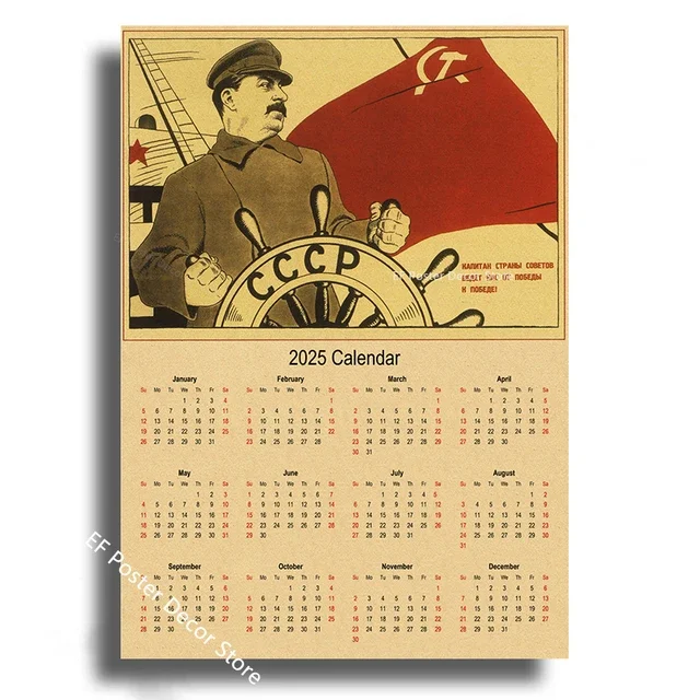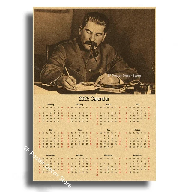 Плакат-календарь на 2025 год на стену с Иосифом Виссарионовичем "И засуху победим" на крафт бумаге в формате А3 (42х30 см). ссылка на календарь.