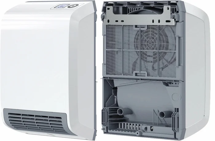 Компактный настенный тепловентилятор с электронным адаптивным управлением и функцией таймера тепла для быстрого нагрева помещения. Электронный контроллер с ЖК-дисплеем и функцией установки температуры с точностью до 0,5 °С. Керамический нагревательный элемент. Индивидуальная программа с температурным режимом. Режим «Проветривание» – определение открытого окна для экономии электроэнергии. Идеально подойдёт для ванной комнаты и туалета. Ссылка на обогреватель