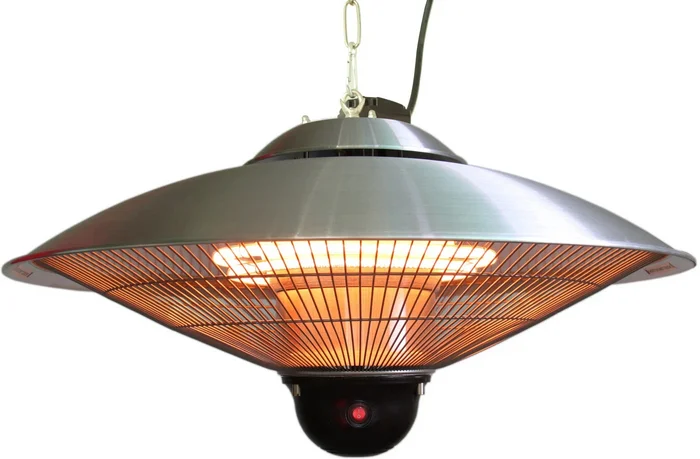 Электрический подвесной обогреватель Hugett Taket Steel 2125 с эргономичной цепочкой в комплекте мгновенно обогреет пространство площадью до 8 м2. Максимальная мощность устройства составляет 2 кВт. Ее можно понижать до промежуточного значения – 1.35 кВт и минимального – 0.65 кВт. Подвесное устройство выполнено из прочной инструментальной стали. Ссылка на него.