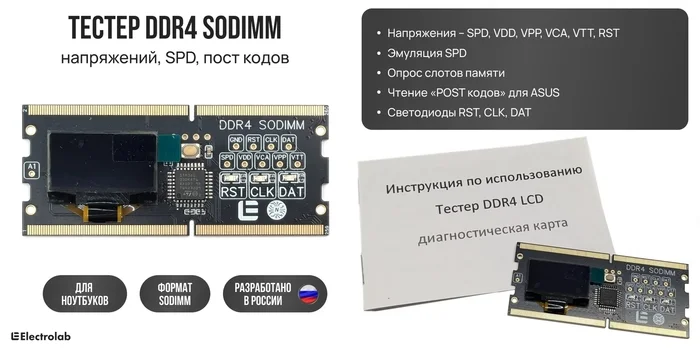 Тестер слота оперативной памяти DDR4 SODIMM с внешней батарейкой, работает по принципу первого тестера из подборки. Стоит 1 350 руб. Ссылка на него. Также есть для слота DDR3 SODIMM. Ссылка