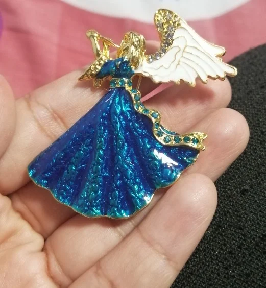 Красивая эмалированная брошка в виде женщины-ангела, играющей на дудочке. ссылка на неё