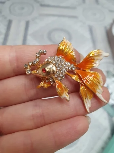 Металлическая эмалированная брошь с кристалликами в виде Золотой рыбки. Ссылка на неё