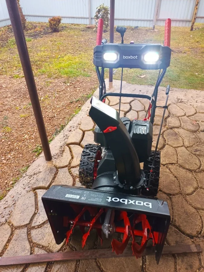 Бензиновый снегоуборщик Boxbot GS 755XE эффективно убирает снег с максимальным комфортом. Профессиональный двигатель мощностью 7 л.с. стабильно работает даже при -30 °С. Матричные LED-фары отлично освещают в темное время суток, а подогрев ручек обепечит комфортную работу в суровый мороз. Электрический стартер упростит запуск двигателя для любого пользователя. Большой ковш 56х53 см и зазубренные шнеки захватывают и измельчают даже высокие сугробы с плотным снегом и ледяным настом, а безвоздушные колеса с уникальным протектором не боятся проколов и обеспечивают отличное сцепление на льду и рыхлом снегу. Ссылка на аппарат.