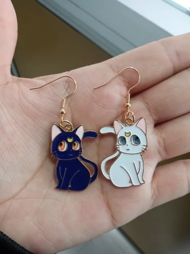 Серьги с двумя забавными кошками с глазами в стиле аниме. Стоит комплект около 120 руб. Ссылка на них