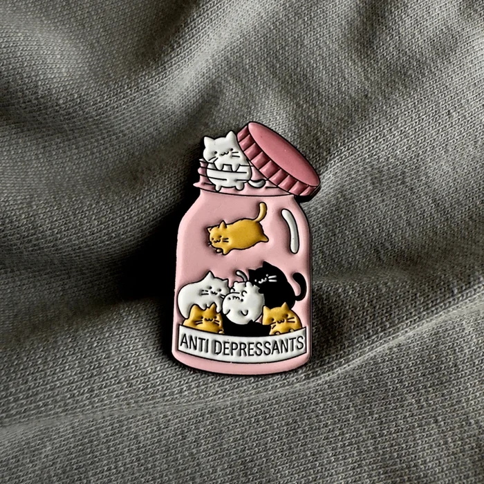 Брошь с баночкой антидепрессантов. Стоит около 104 руб. Ссылка на них