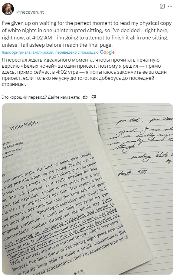 В TikTok даже запустили челлендж: прочитать «Белые ночи» за одну ночь, даже если она не белая.