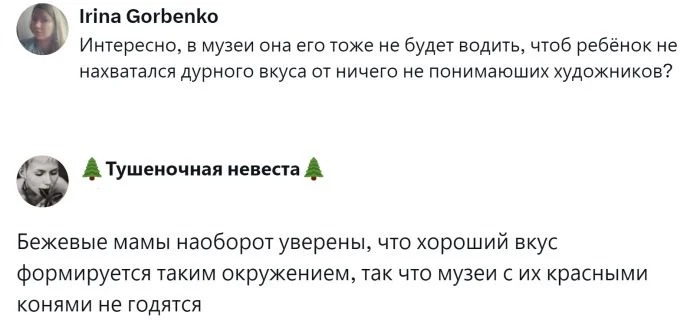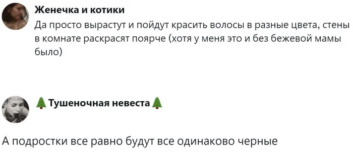 Кроме того, такая одежда и игрушки нейтральны по отношению к полу ребёнка, избегая привычных розовых и голубых оттенков. Однако, как говорится, "лучшее — враг хорошего". Изначально полезная идея привела к неожиданным результатам: появились так называемые "грустные бежевые мамы" и "грустные бежевые дети". Пользователи обсуждают эту тему и делятся своими мыслями.