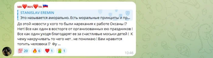 Интересно, что у Оксаны нашлось много защитниц, которые напирали на то, что это личное дело девушки, с кем и как проводить своё свободное время. Звучали также предположения, что травлю Оксаны заказали конкуренты по бизнесу.