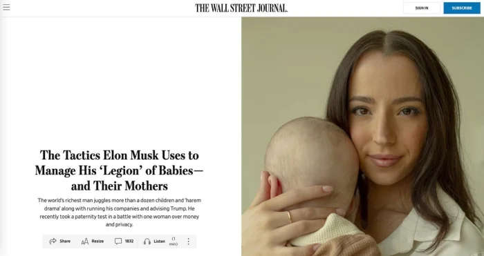 Женщина отказалась от молчания и открыто рассказала о своих отношениях с Маском, после чего он снизил сумму ежемесячных выплат на сына до $40 тыс. Узнав о статье в WSJ, он уменьшил алименты вдвое, отправив Эшли $20 тыс. Она также сообщила, что во время беременности предприниматель предлагал ей найти несколько незамужних подруг для его осеменения.