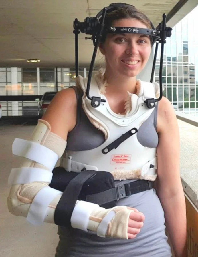 Врачи совершили настоящую чудо-операцию, соединив её череп с позвоночником. Когда она пришла в сознание, Кинг уже не могла двигать головой — хирурги срастили позвонки от черепа до таза.