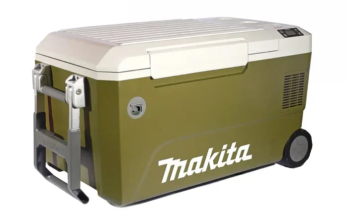 Мобильный холодильник Makita CW002GZ01 относится к компрессорному типу и выделяется в ряду аналогов приличной емкостью морозильной камеры – 50 литров. Работает от одного аккумулятора 40В XGT или 18 В LXT, от 12 В автомобильного адаптера или розетки. Его можно использовать и для нагрева до + 60 градусов, а в режиме охлаждения у этого гаджета весьма приличная характеристика – до минус 18 градусов. Стоит такой 74 000 руб . Ссылка на него
