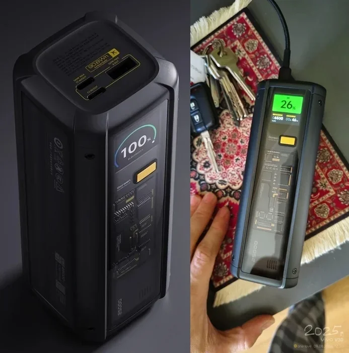 Высокопроизводительный внешний аккумулятор с ёмкостью 25 000 мАч и поддержкой быстрой зарядки до трёх устройств одновременно. Первый USB Type-C порт обеспечивает мощность до 140 Вт, что достаточно для зарядки ноутбуков, а дисплей на корпусе показывает точный уровень заряда. Прозрачный корпус и удобная система зарядки делают его стильным и практичным решением для пользователей, нуждающихся в быстрой и эффективной зарядке гаджетов. Стоит 8400 руб. Ссылка на него