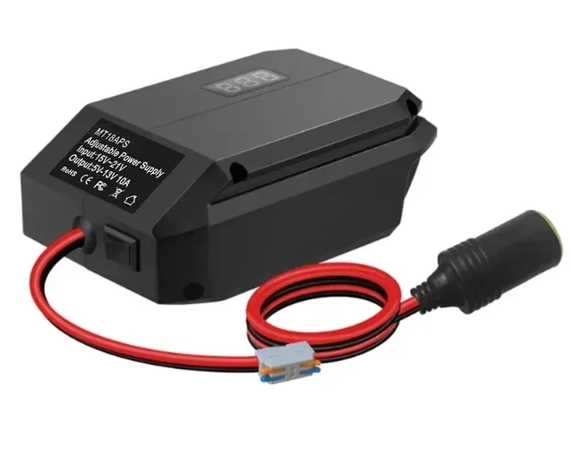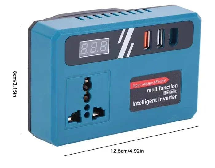 Инвертор на аккумулятор Makita, который преобразует 18 -21 В постоянного тока до 220 В переменного тока. Нагрузка максимум 120 Вт. Также есть USB порты для зарядки телефона. Стоит такой 1200 руб. Ссылка на него
