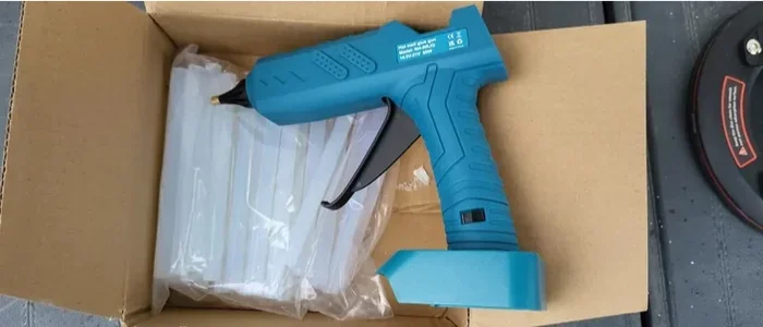 Клеевой пистолет для работы от Макитовских аккумуляторов напряжением 14.5V~21V. Стоит такой с стержнями 1400 руб. Ссылка на набор
