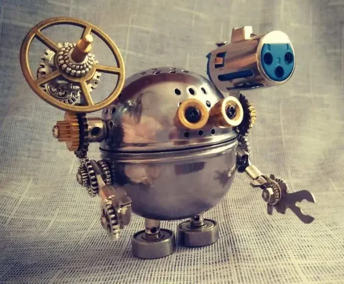 Набор железных деталей для сборки прикольного мини робота в стиле стимпанк с клешней и пушкой за спиной. Стоит такой 6 600 руб. Ссылк а на него
