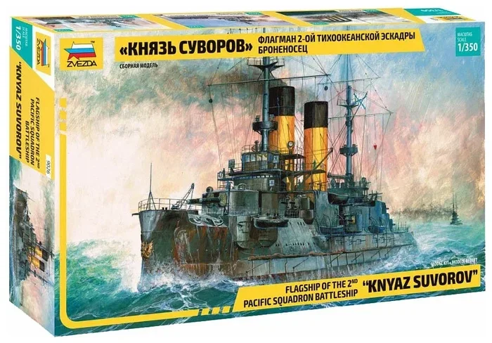 Сборная модель флагмана 2 тихоокеанской эскадры броненосца Князя Суворова 1:350 от ZVEZDA — В конце XIX – начале XX веков в Российской Империи активно развивалось военное кораблестроение. В преддверии русско-японской войны руководство государства приняло решение об укреплении Тихоокеанского флота. Так появился один из самых известных броненосцев в истории. Если вы хотите стать владельцем его точной копии, попробуйте сконструировать сборную модель флагмана 2-ой тихоокеанской эскадры броненосец Князь Суворов. Ссылка на набор