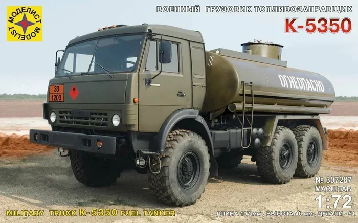 Модель 307287 "Военный грузовик топливозаправщик К-5350" (1:72) - отличный выбор для моделистов, желающих пополнить свою коллекцию современной российской военной техники. Она станет центральным элементом диорамы, изображающей работу тыловых служб. Ссылка на набор