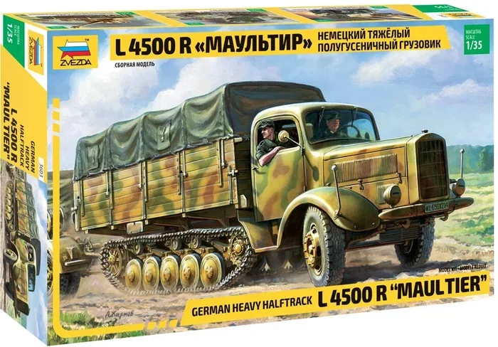 Сборная модель ZVEZDA Немецкий тяжелый полугусеничный грузовик L 4500R Маультир. Модель выполнена из пищевого пластика, что делает ее безопасной для использования. В комплекте вы найдете 426 деталей, которые легко собираются по инструкции.
