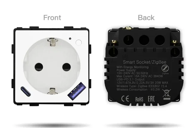 Умная розетка Zigbee с Type-C и USB, расположенные под углом. Стоит такая около 1000 руб. Ссылка на неё
