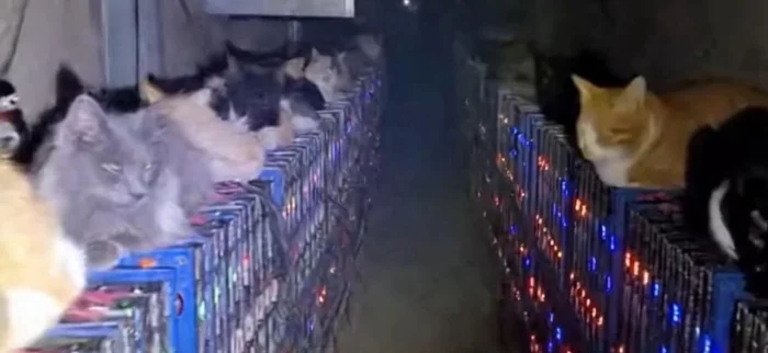 Во время плановой проверки выяснилась любопытная причина неполадок: сотни бездомных кошек проникли в майнинговый цех и устроились греться на работающих видеокартах, полностью заблокировав систему охлаждения.