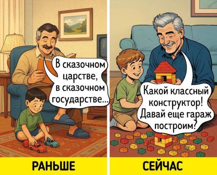 Многие дедушки теперь не просто присматривают за внуками — они полноценно с ними играют и даже кайфуют от этого, ведь в их детстве таких развлечений не было