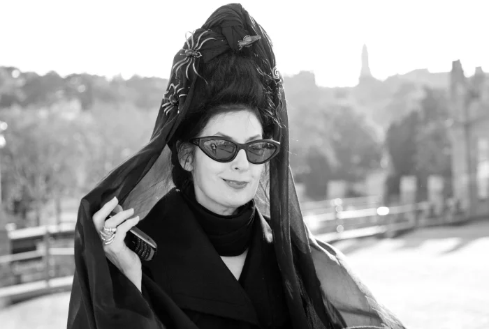Представители прессы неизменно обращаются к ней с одинаковым вопросом. Ученики парижских школ называют её «La Sorcière» (Ведьма). Её внешний вид — тёмные очки в форме «кошачьего глаза», чёрная вуаль, готические аксессуары с изображением пауков и жаб — напоминает персонажа из готического романа, который случайно оказался в современной реальности.