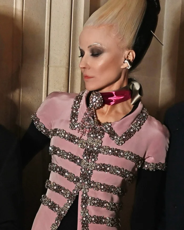 Её образ — это уникальная визитная карточка. Короткие волосы, окрашенные хной, выразительный кукольный макияж и ключевая деталь — многослойные, почти скульптурные юбки, формирующие неповторимый силуэт. В этом визуальном протесте её сравнивают с такими знаменитыми эксцентриками, как Изабелла Блоу.