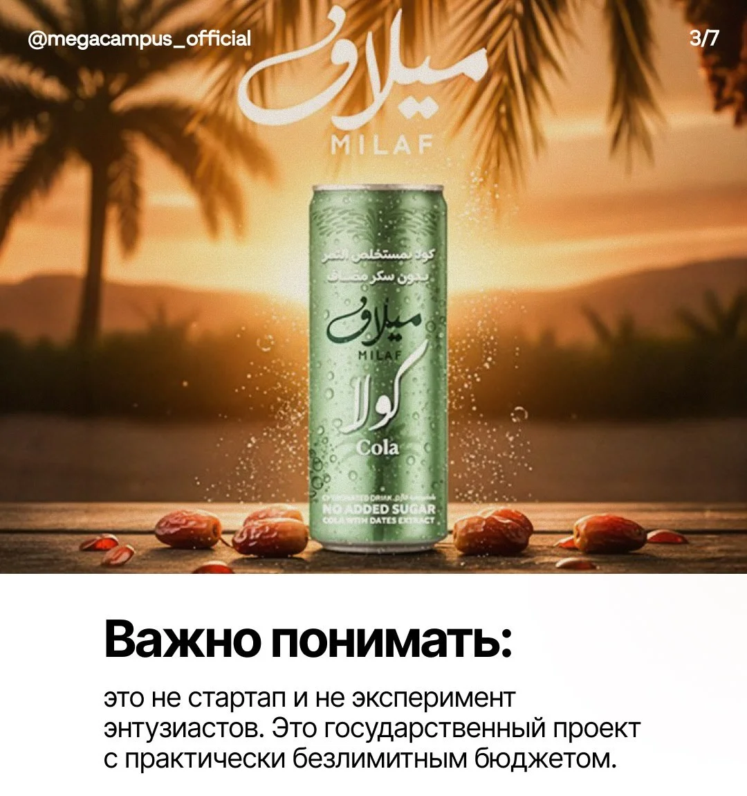 Проект сразу привлёк внимание не только необычной рецептурой, но и масштабом. Это не стартап энтузиастов и не локальный эксперимент для туристов. За Milaf Cola стоит государственная поддержка и практически неограниченный бюджет.