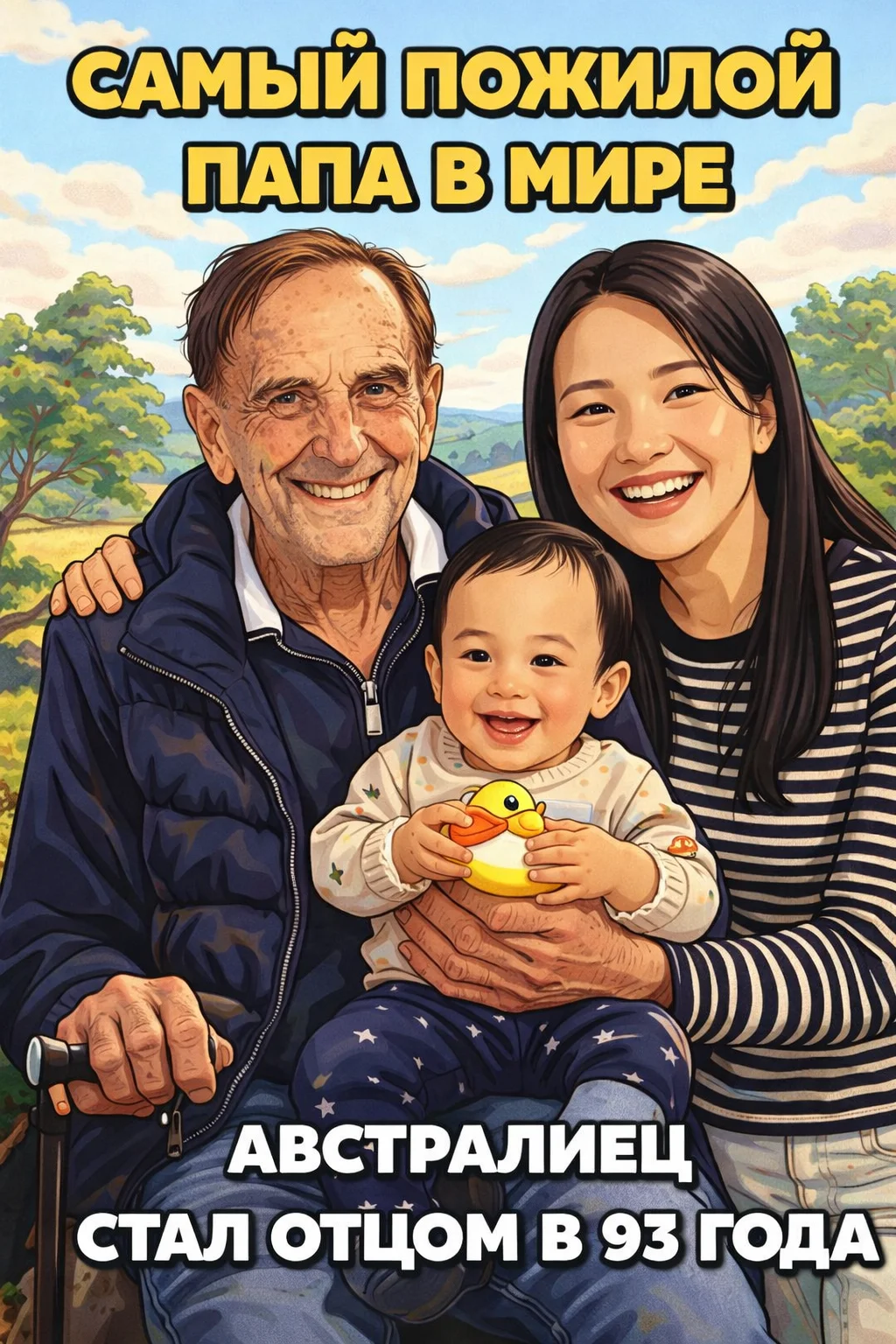История этого мужчины моментально разлетелась по миру и вызвала бурю эмоций — от восхищения до споров. Австралиец стал отцом в возрасте 93 лет и официально был признан самым пожилым отцом в мире. Его жизнь доказывает, что возраст не всегда является преградой для новых глав, особенно если речь идёт о семье и любви.